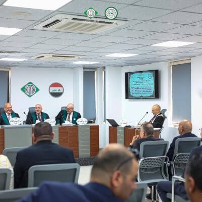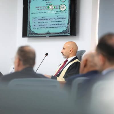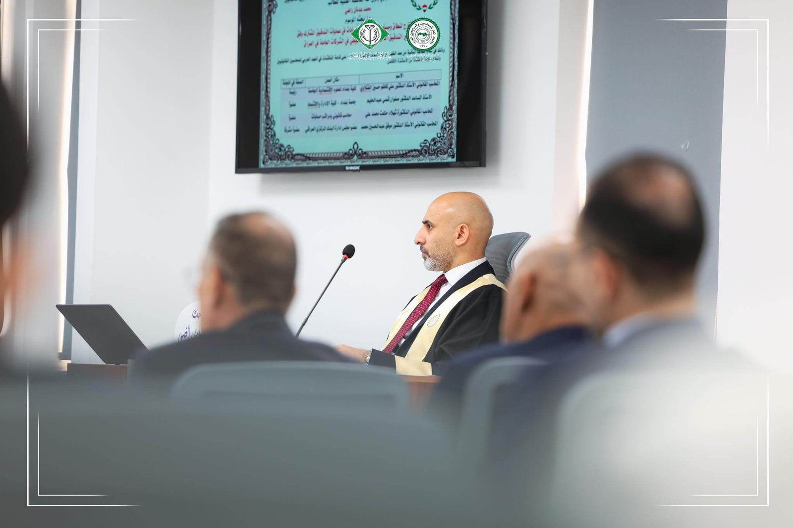 بإشراف رئيس مجلس أمناء المعهد العربي للمحاسبين القانونيين الدكتور جواد غانم الشهيلي واستناداً إلى المادة (٢٤) الفقرة رابعا من النظام الأساسي للمعهد جرت اليوم السبت المناقشة العلنية للطالب ( محمد عدنان راضي) عن بحثه الموسوم اطار مقترح لنطاق ومسؤوليات مراقبي الحسابات في عمليات التدقيق المشترك وفق معايير التدقيق الدولية – بحث تطبيقي في شركات التدقيق العاملة في العراق)) وعلى قاعة المناقشات في المعهد العربي للمحاسبين القانونيين جزءاً من متطلبات الحصول على شهادة الدكتوراه المهنية في المحاسبة القانونية.